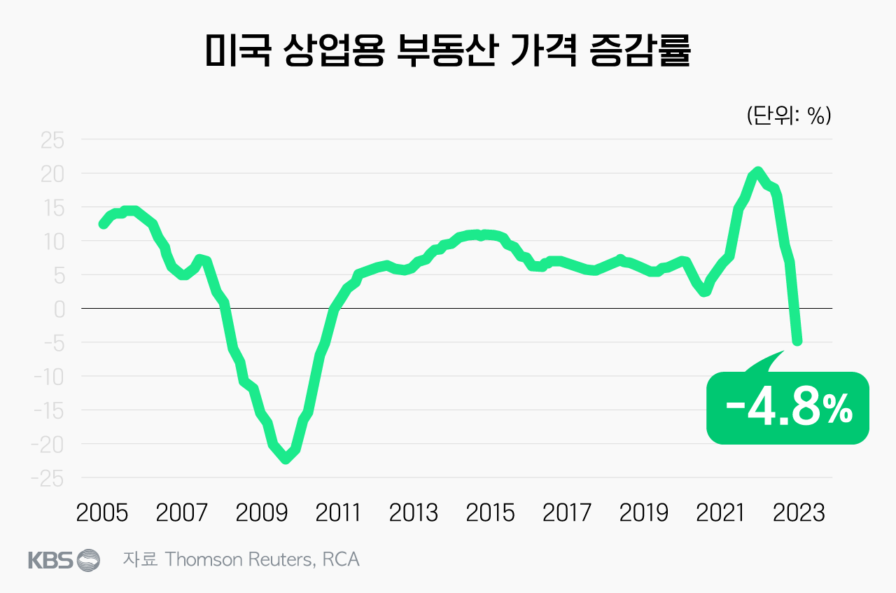 15. 그런 상태에서 상업용 부동산 가격은 2023년 들어 하락세에 접어들었음.