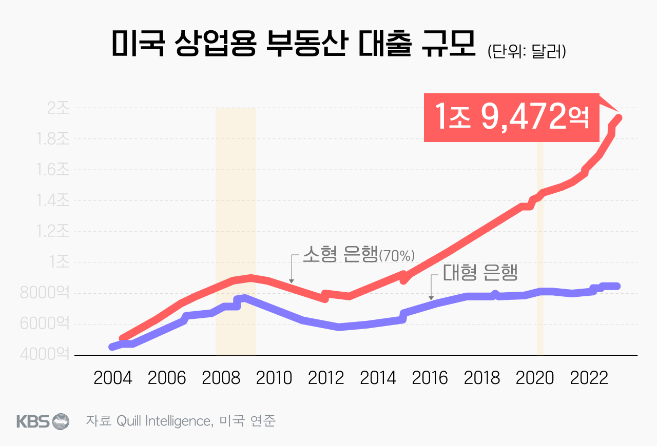 26. 상업용 부동산 가격이 폭락하게 되면 이들에게 대출해 줬던 소형은행은 대출금을 온전히 받기 어려울 것임.