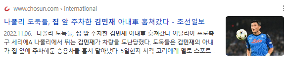 46. 김민재 선수 집 앞에 주차한 차도 도난당하는 상황임.