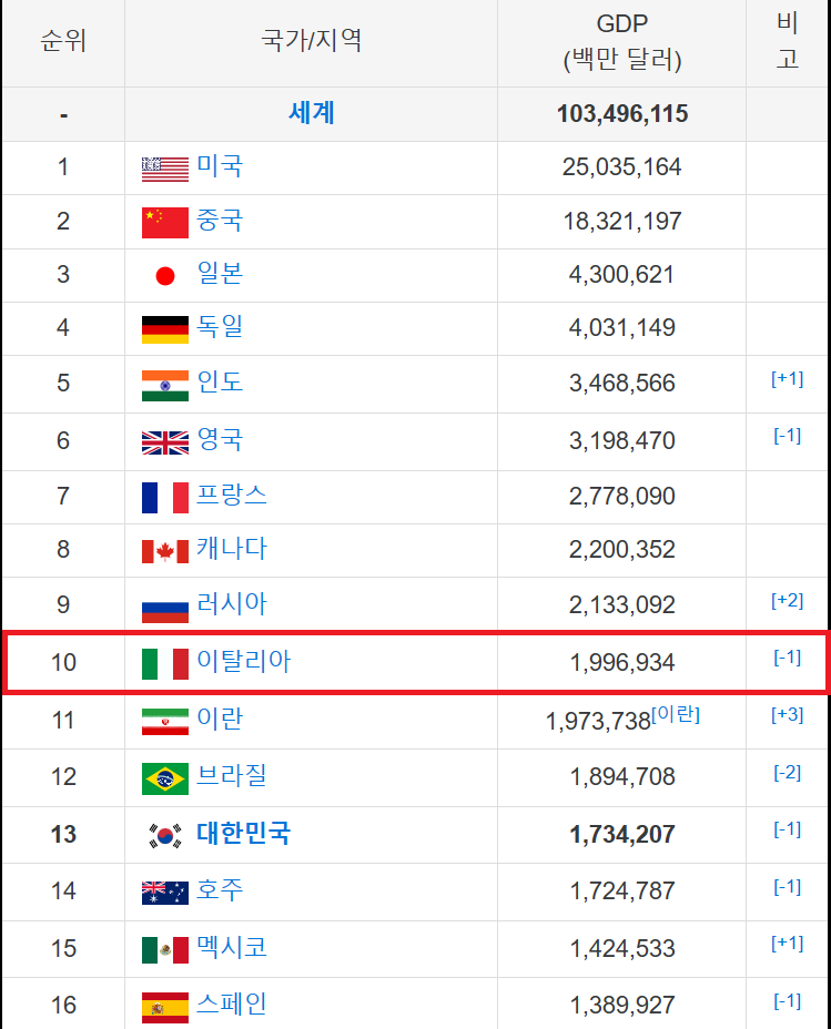 2. 실제로 GDP규모도 1조 9,969억 달러로 세계 10위 수준으로 한국보다 높음.