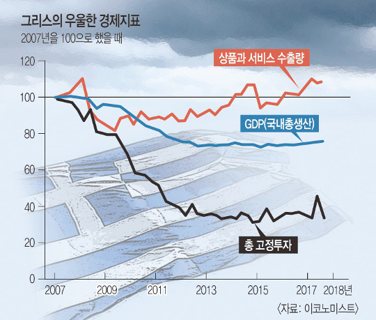 8. 이 시기에 그리스의 경제상황이 꼬꾸라졌다는 것임.