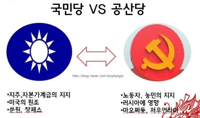 23. 이후 본토에 마오쩌둥 중심의 새로운 정당인 중국공산당(공산주의 추구)이 창설됨.